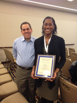 Dr. Cohen supporting Monique after receiving the Emerging Scholar and Professional Organization Poster Award at GSA.