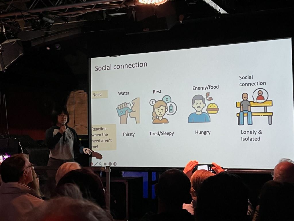 Cullen presenting an introduction to social connection and its importance in our daily lives at Nerd Nite!