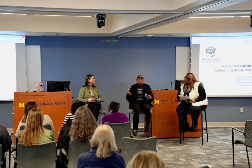 Earlier this semester, we had the opportunity to celebrate Martin Luther King, Jr. Day with an event focused on the NSAL follow-up survey, entitled “Extending the Legacy: Innovations of the 25-Year Follow-up of the National Survey of American Life”. This MLK-day event featured presentations by NSAL project leadership including Dr. Mezuk, Project Director Dr. Deborah Robinson, Expert Advisory Board member Dr. Belinda Tucker, and Stephanie Chardoul, who is the Director of Survey Research Operations at ISR. We were also very fortunate to be joined by interviewers who conducted fieldwork in the original NSAL survey (fielded in 2001), who led a panel discussion drawing from their experiences and expertise.