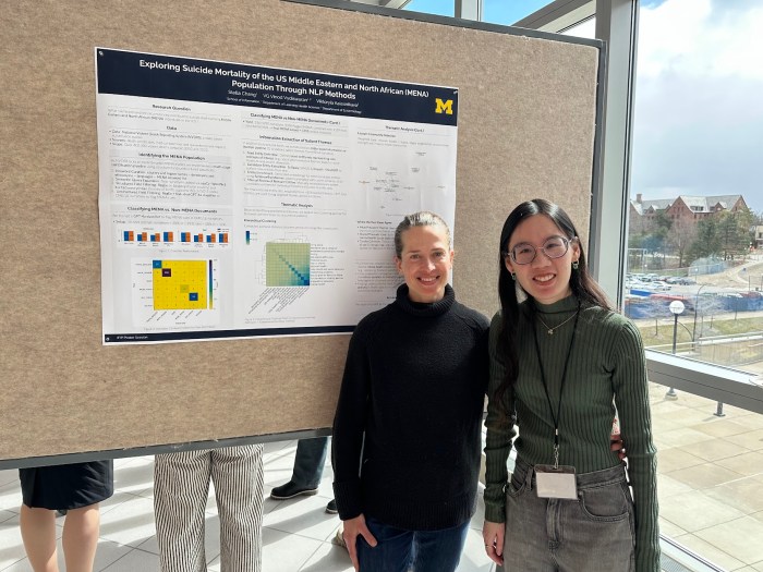 In addition, Stella Chang, who is a PhD student in the School of Information working with Dr. Viktoryia Kalesnikava, presented their work identifying Middle Eastern and North African (MENA) suicide decedents in NVDRS at the IFIP research day.