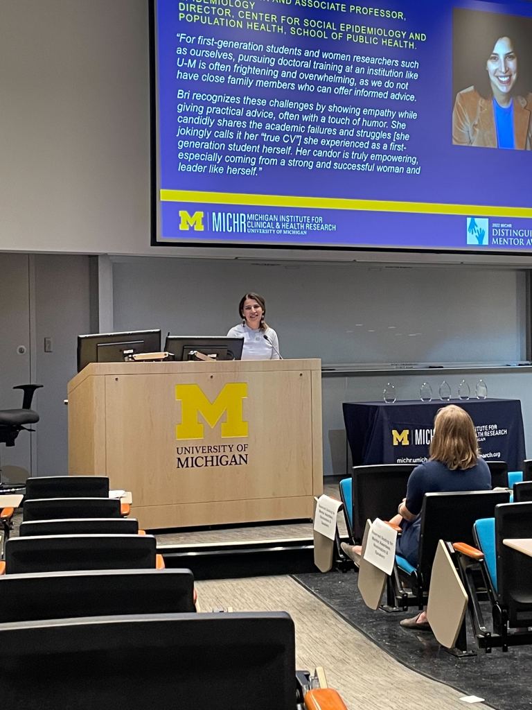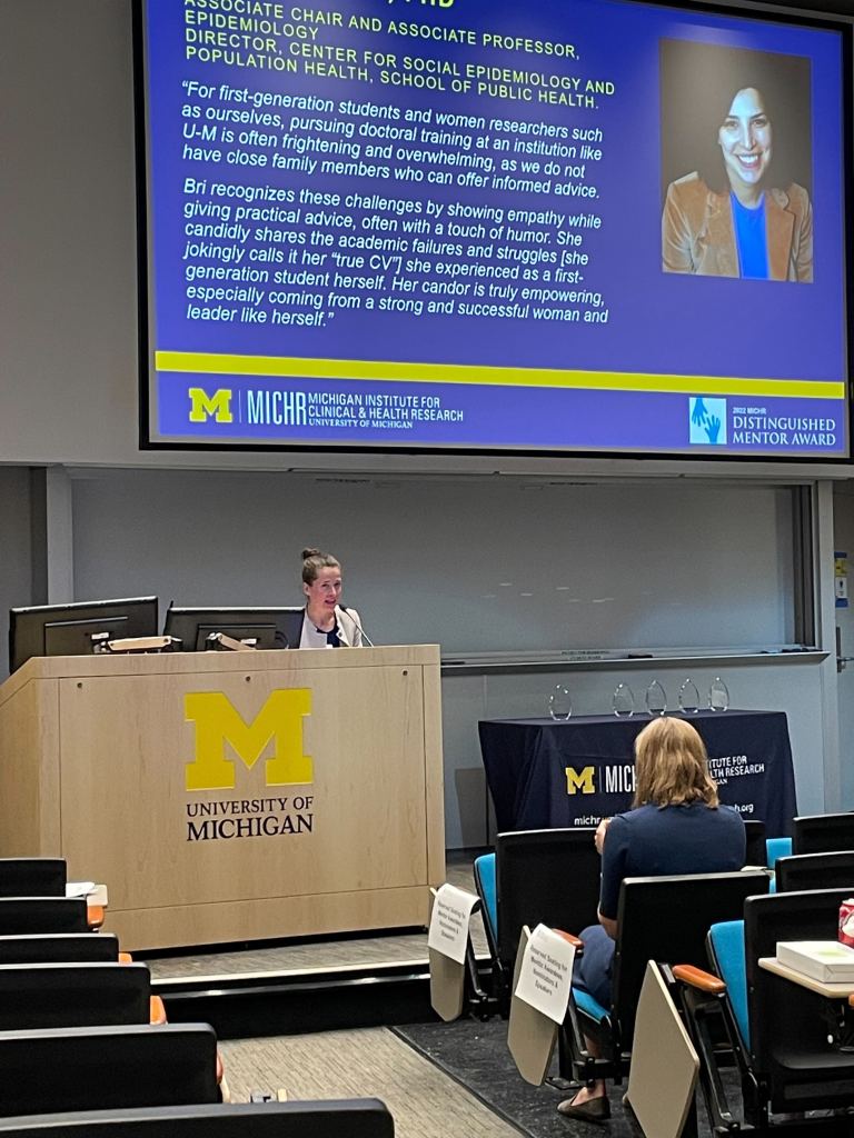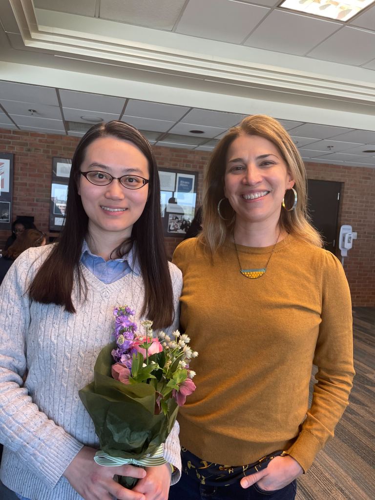 Left: Weidi with Dr. Mezuk at the ceremony. Right: Weidi with Dr. Mezuk (left), Linh Dang (center left), and Lily Johns (right)