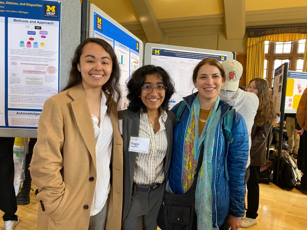 Pragya (left) and Bella (center) pictured with their UROP posters and with Dr. Meuzk (right).